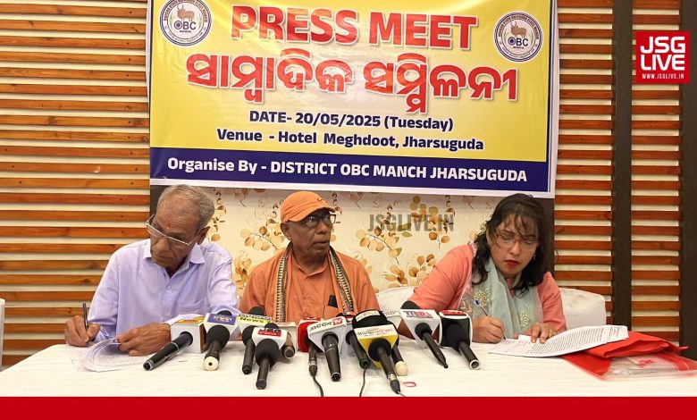 Jharsuguda: A press conference was organized by the Jharsuguda District OBC Manch at Hotel Meghdoot. The event was graced by the Executive President of Odisha OBC Manch, Smt. Ranjita Rani Pradhan, District President Biranchi Sahu, Secretary Gopinath Behera, Vice President Siraju Khamari, and Gnyan Behera among others.