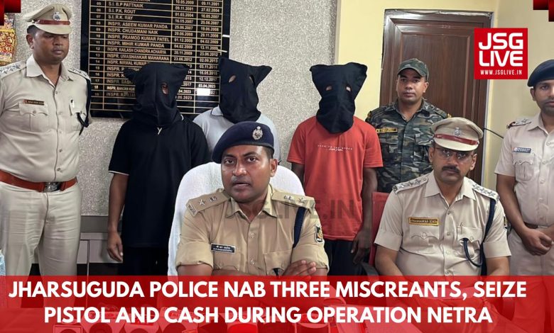 Jharsuguda Police nab three miscreants, seize pistol and cash during Operation Netra